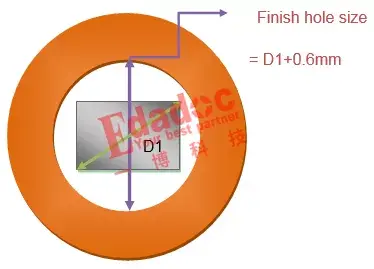 如果元器件的引脚是方形,那么PCB板上的成品钻孔尺寸是比方形引脚的对角线大0.2-0.3mm。