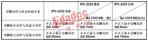 关于器件引脚所对应的金属化孔设计标准,还有下面的一些标准规定,请大家参考。