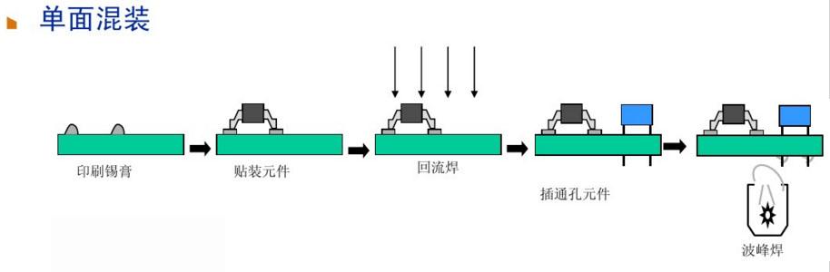 PCB板进行锡膏印刷,贴装电子元器件后经回流焊焊接固定,质检完成之后进行DIP插装,然后进行波峰焊焊接或是手工焊接,如果通孔元器件较少,建议采用手工焊接。