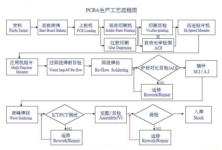 以上仅是简化了印刷电路板的PCBA组装工艺,以图文的方式展示其制程。但是随着PCBA组装工艺和生产工艺逐渐被优化,其不合格率也不断降低,保证生产高质量的成品。以上所述的所有电子元器件的焊点质量决定了PCBA板的质量。因此,相关电子厂商在寻求PCBA组装加工厂商时,最好需求经验丰富和加工设备水平较高的。