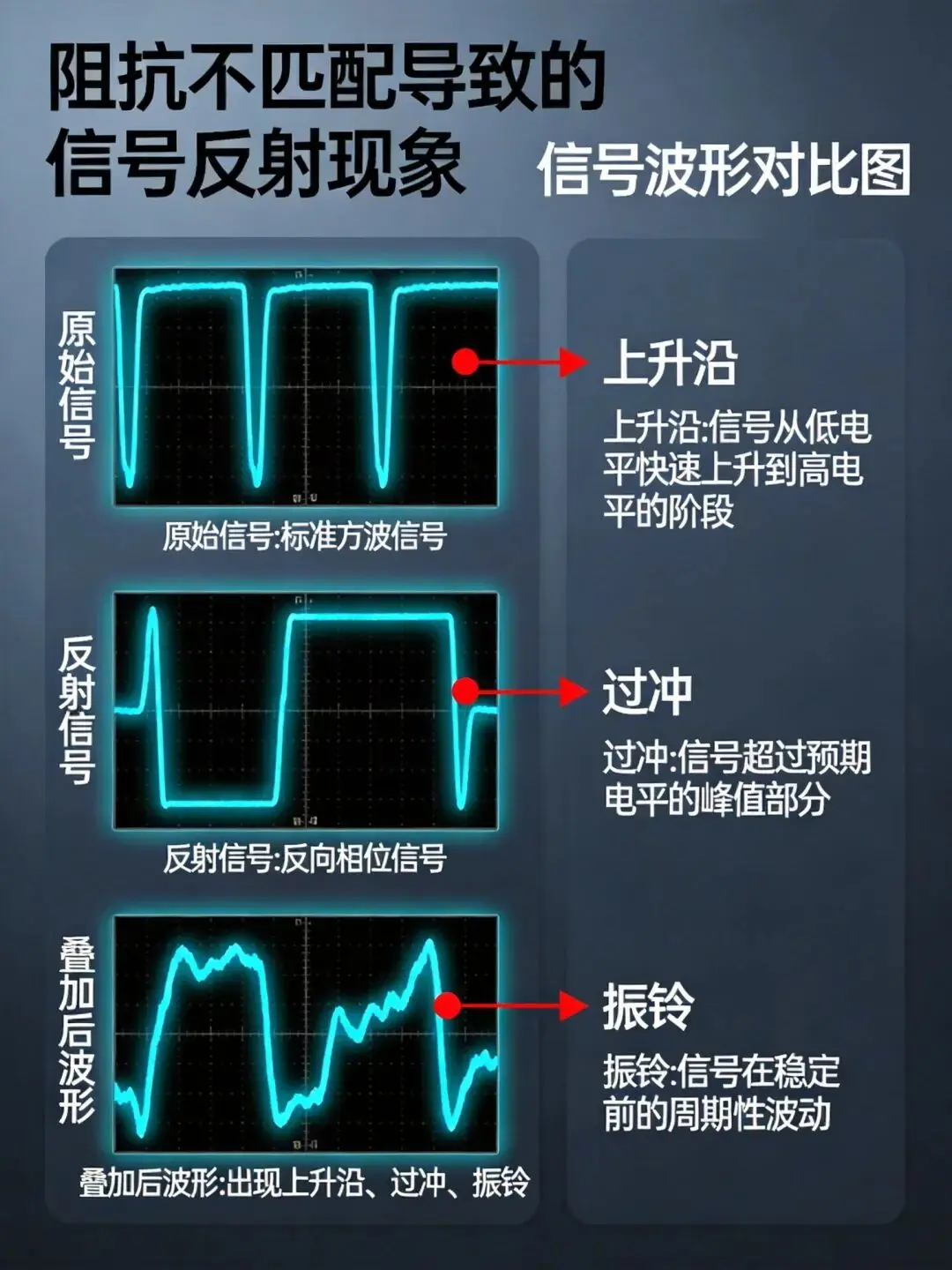 反射会造成什么后果?过冲、振铃、甚至逻辑错误。这就是为什么在高速设计中,"阻抗匹配"是必须遵守的基本原则。